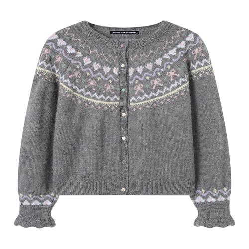 [미니멈에브리데이][미니멈 에브리데이]프릴 소매 리본 자수 패턴 울 가디건 (EB4CK041D)