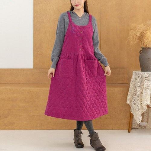 [디얼마미][디얼마미] 꽃자수 골덴 누빔 원피스 /마담 미시 중년 여성 빅사이즈 40대 50대