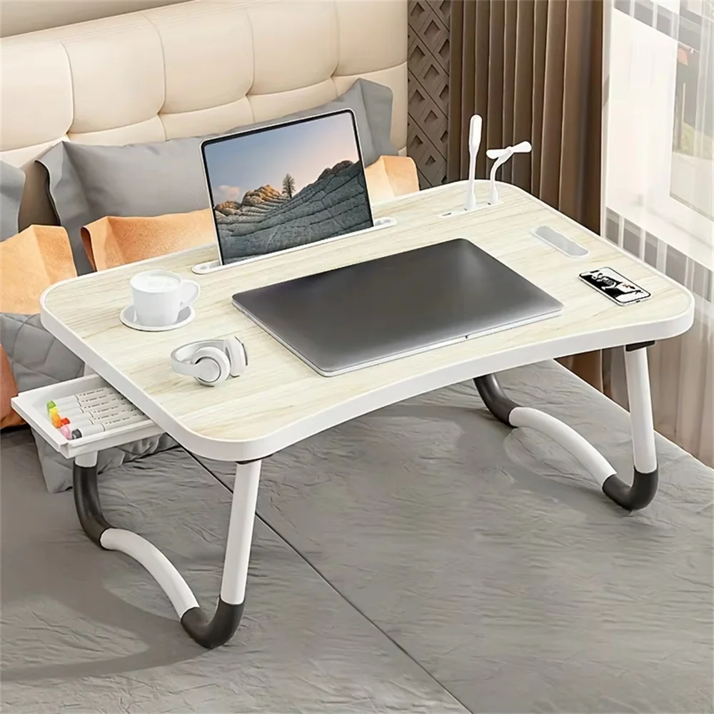 휴대용 접이식 노트북 테이블 침대 책상, USB 포트, 수납 서랍 및 컵 홀더가 있는 랩 데스크 트레이 테이블, 침대/소파에서 작업용