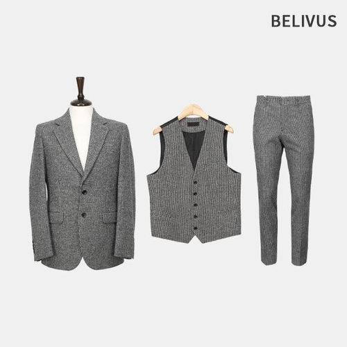 [빌리버스]남성 데일리 쓰리피스 세트 헤링본패턴 싱글 자켓 울블렌드 정장 BVOT177
