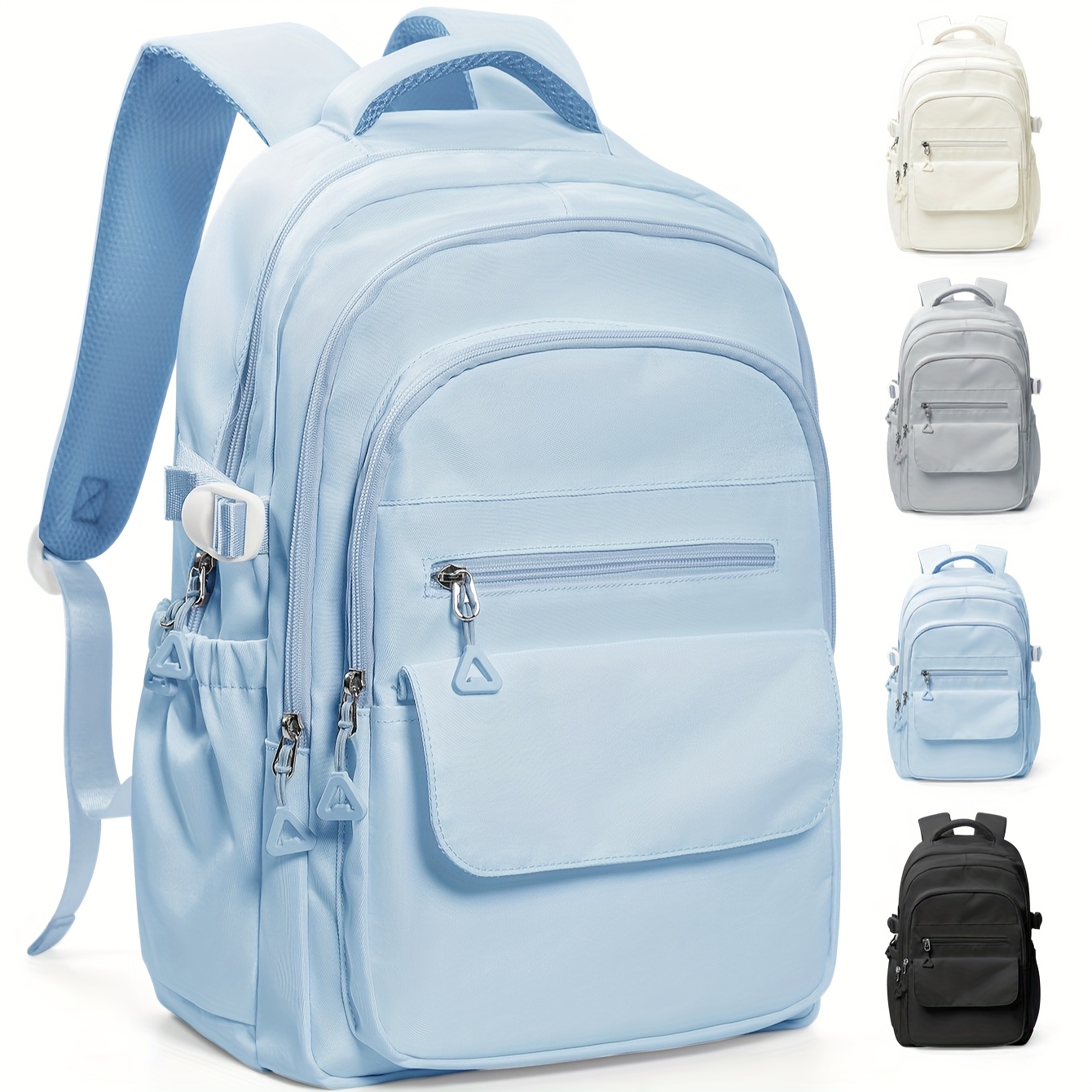 TEMU 여성용 백팩 세트, 학업 스타일 블랙·핑크·블루·그린·옐로우 옥스포드 원단 조절 가능한 어깨끈과 지퍼 클로저 폴리에스터 안감 여성 패션 가방 4종 세트