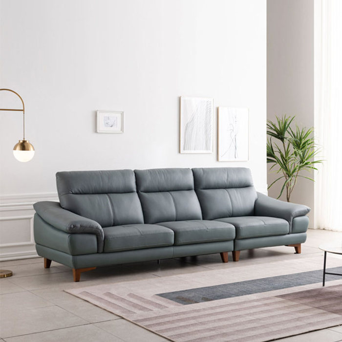 꼬마나무100%국내제작 이태리천연면피통가죽 소가죽4인쇼파, 블루