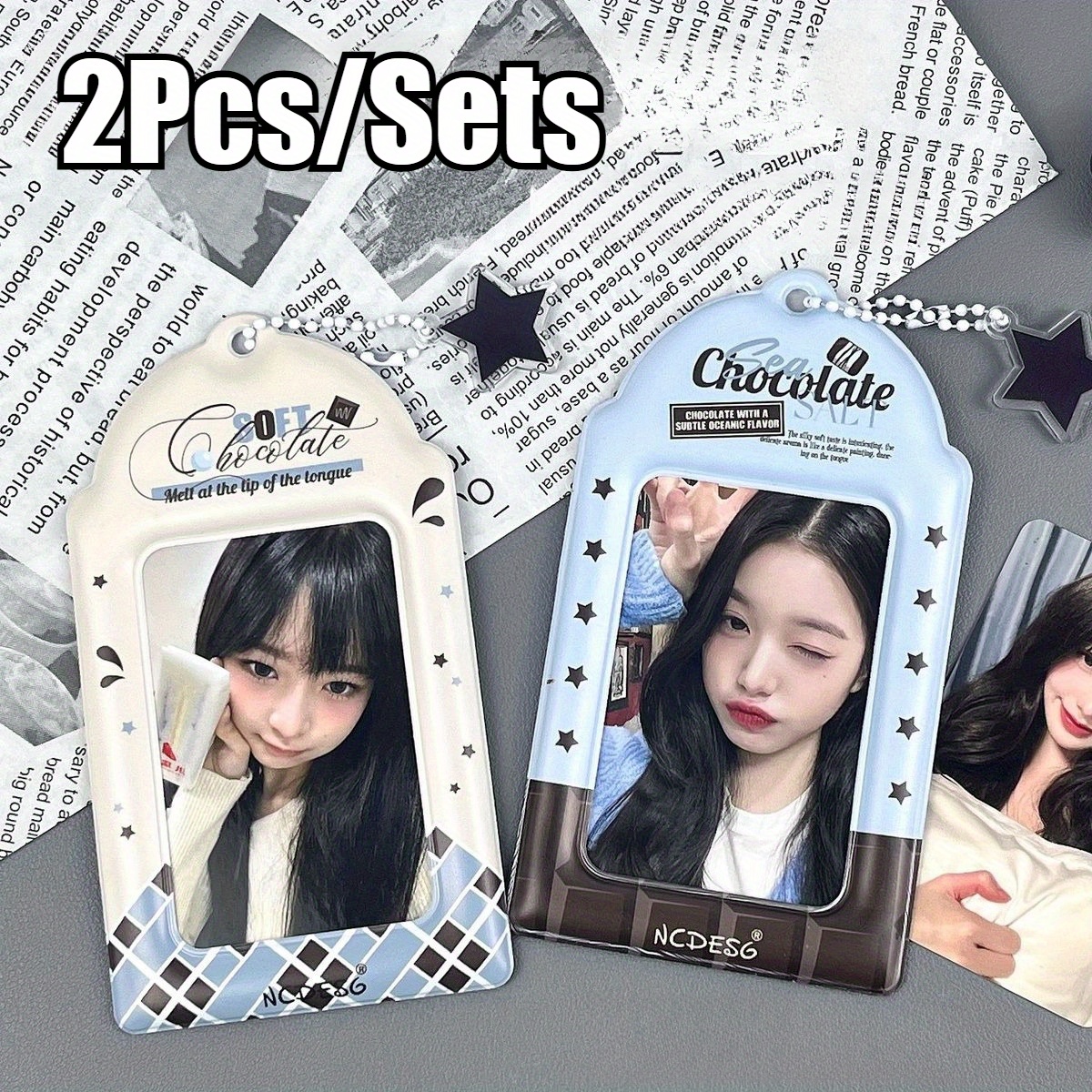 TEMU 2개 세트 초콜릿 패턴 사진 카드 홀더, K팝 팬 아이돌 카드 홀더, 창의적인 투명 ID 카드 홀더와 같은 고양이 펜던트 포함, 신분증 및 교통카드 보관용