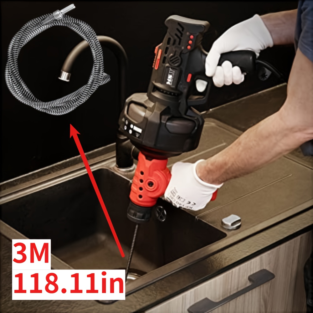 TEMU 1개 8m/5m//2m 전기 배수 막힘 해제 액세서리, 스프링 막힘 해제 도구, 내구성 있는 하수구 변기, 파이프 클리너, 화장실, 배수구, 싱크대, 욕조, 하수구 청소, 건조기 환풍 액세서리, 통합 헤드 청소 스프링|변기부속품