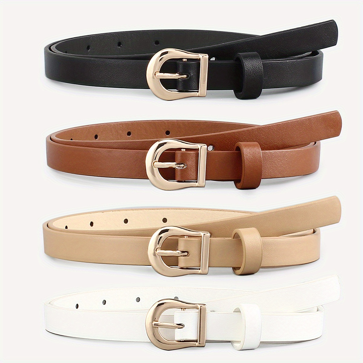 TEMU 4개 세트 여성 클래식 PU 얇은 벨트, 바지, 청바지 및 드레스를 위한 캐주얼 핀 버클 벨트.