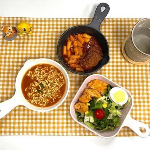 양손잡이 도자기 라면 전골 그릇 가정용 전자레인지 조리 용기 아이보리 그린 2색상
