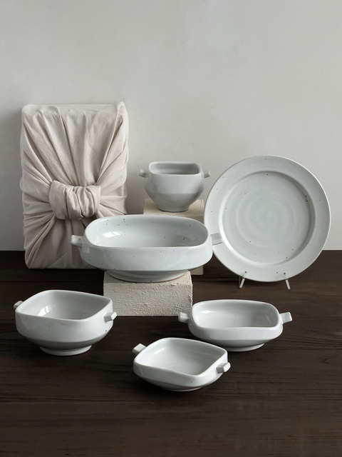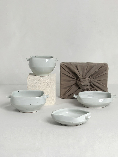 [라운드앤플랫] [핸드메이드 담] 사각 한식기세트 4P_도자기 식기세트 선물세트 전통 국내산 접시 그릇 플레이트