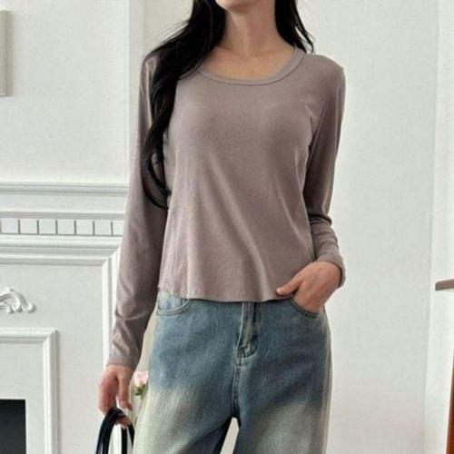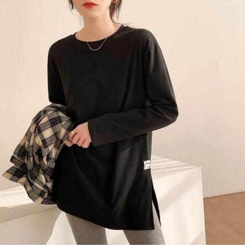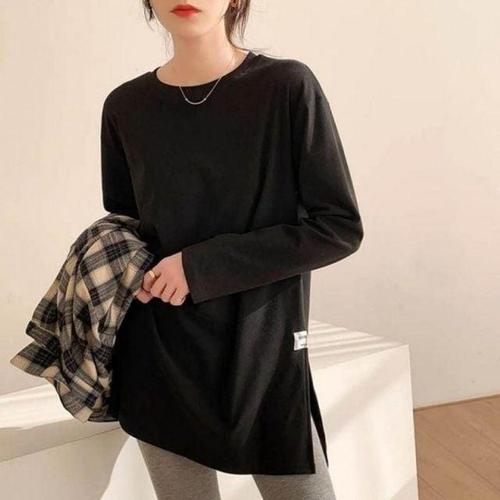 캐주얼 무지 티셔츠 여성의류 절개 긴팔 라운드 WFLQDBF