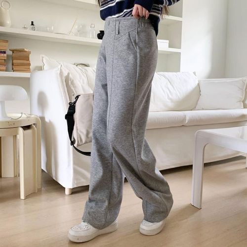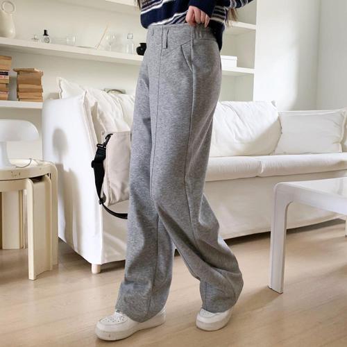 [옷자락]여성 기모 세미와이드 절개라인 팬츠
