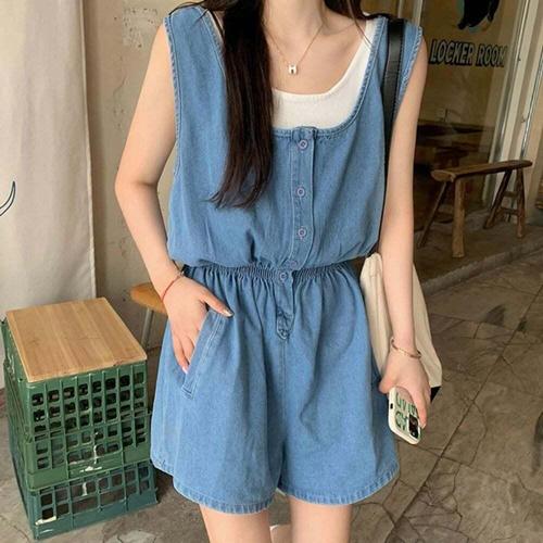 [셀럽하우스]끈 CGSA6131 베이직 여성 나시 점프슈트 올데이 밴딩 캐주얼 원