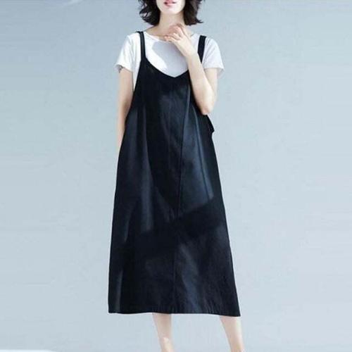 [셀럽하우스]여자 KVDY9525 루즈핏 편한 점프수트 브이넥 민소매 레이어드