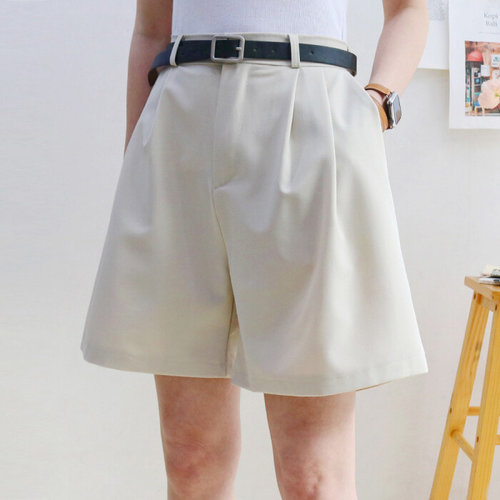 레이츄 / 벨트 세트 핀턱 와이드 밴딩 정장 반바지 (4컬러)