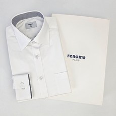 [백화점 정품] 레노마 남성 카라 소매 배색 스판 솔리드 드레스셔츠 화이트 일반핏 스판소재 정장 와이셔츠 긴팔 (선물포장)