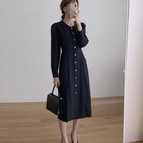 AOKADA 여성 가을 겨을 오피스룩 결혼식 하객룩 민소매 롱 원피스