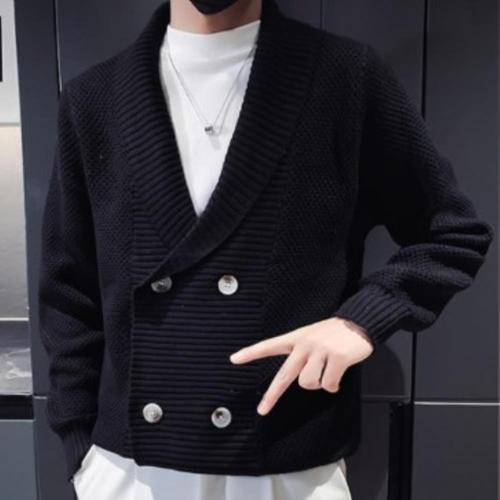 [옷자락]남성 정장용 더블버튼 포켓 긴팔 니트 가디건