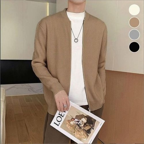 [셀러허브_여성트랜드패션]라운드넥 남성 캐주얼 니트 간절기 집업 남성카디건 아우터 정장 가디건