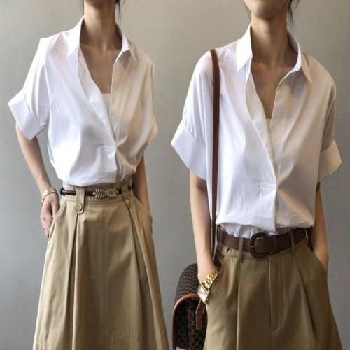 [엄지척]여자 오피스룩 정장 남방 반팔 블라우스 롤업 셔츠_19651747_667501