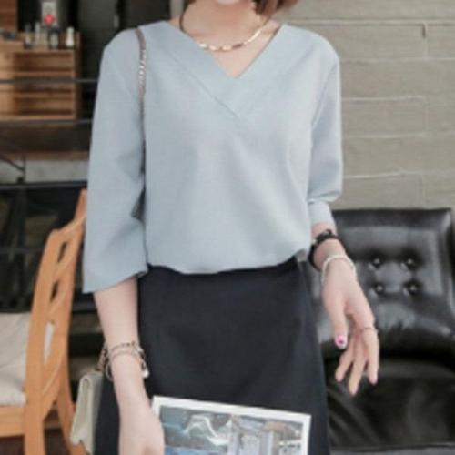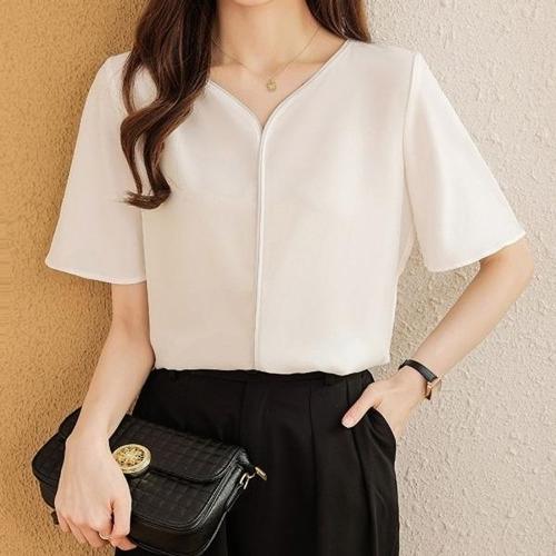 [엄지척]정장 오피스룩 심플 브이넥 반팔 블라우스_19659058_667501