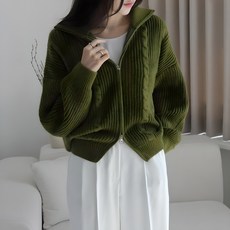 제니트 여성 포근한 투웨이 하찌 꽈배기 루즈핏 하이넥 니트 긴팔 집업 가디건