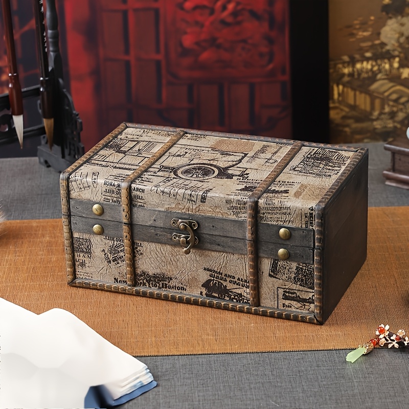 TEMU 빈티지 목재 잠금 가능한 책상 상자 - 팔각형 수납 캐비닛, 보석, 열쇠, 사무실 및 휴일 선물 (할로윈, 어머니날, 아버지날)용 홈 데코, 책상 장식