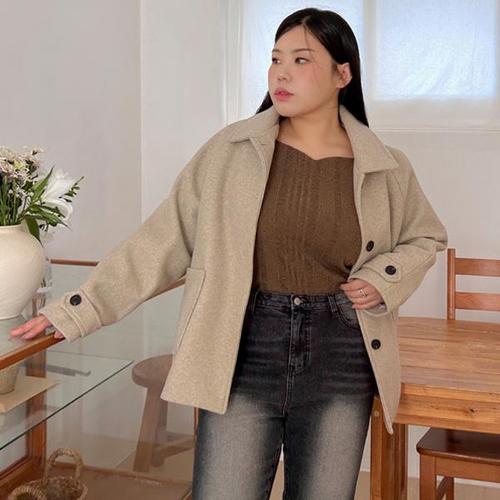 이블렛by제이스타일 여성용 빅사이즈 로루엔 로고 코튼 크롭자켓