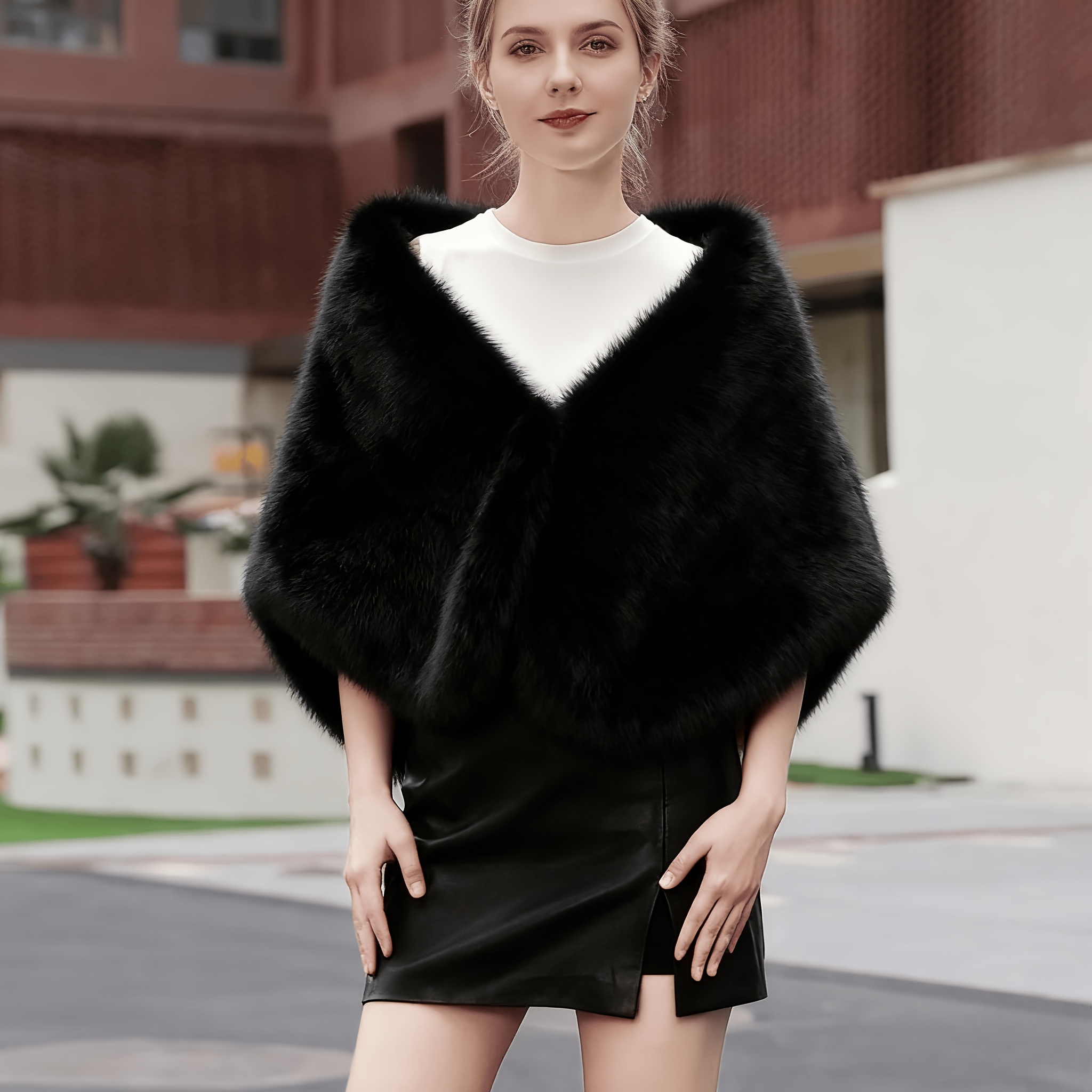 TEMU 여성용 우아한 인조 모피 숄 - 고급스러운 겨울 코트 스타일 랩, 부드럽고 따뜻한 인조 모피 질감, 손세탁 및 드라이 클리닝 가능, 결혼식, 파티, 일상용 - 여성, 웨딩 액세서리, 스타일, 스타일리시 랩, 패션 애호가를 위한 이상적인 선물