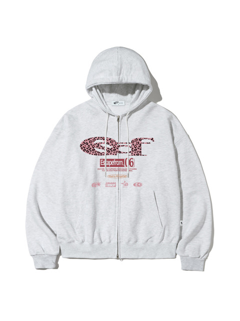 [PIGC] 여성 호피 프린트 탈부착 후드 점퍼 블랙 (LFC641139)