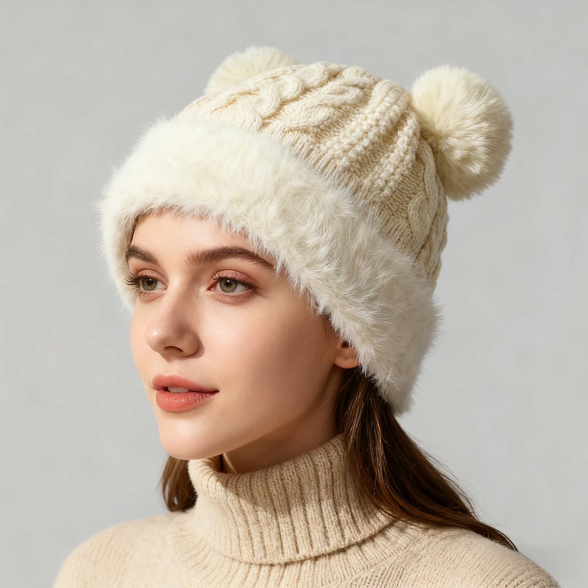 TEMU 6가지 색상, 2025년 신상 여성용 플러시 곰돌이 귀 겨울 모자 - 따뜻한 안감, 탄성 조절 가능 비니, 부드러운 폴리에스터 원단, 귀여운 동물 크리스마스 및 추운 날씨 스타일, 겨울 모자