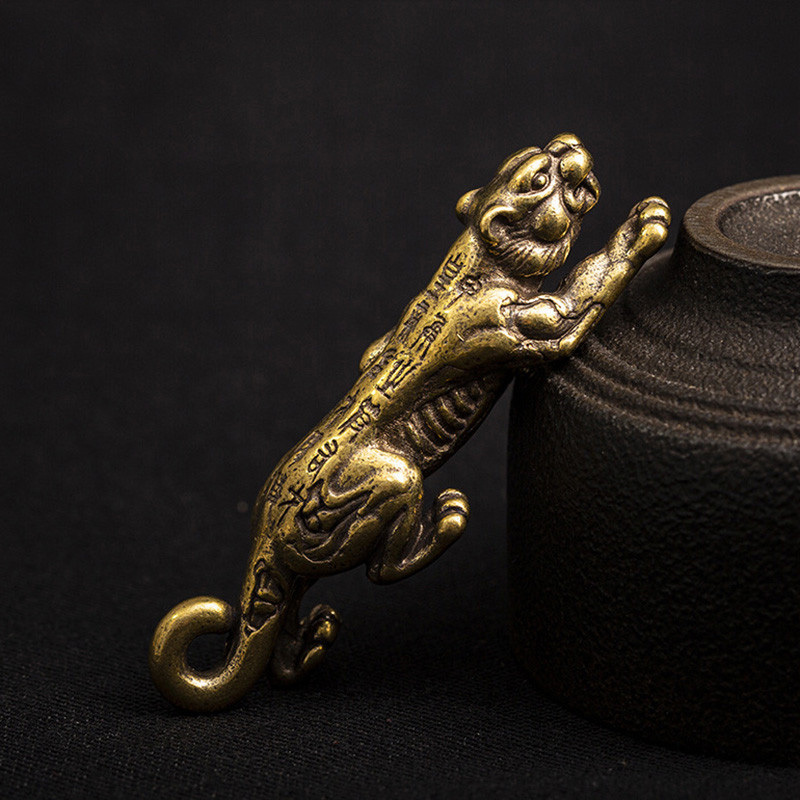 TEMU 빈티지 중국 호랑이 토큰 조각상 - 내추럴 에이징 브라스 미니어처 피규어, 빈티지 구리 호랑이 조각품 데스크탑 장식, 홈/오피스/선반 장식용, 수집용 동물 토큰 (정교한 제작) - 남성용 미니 수집품