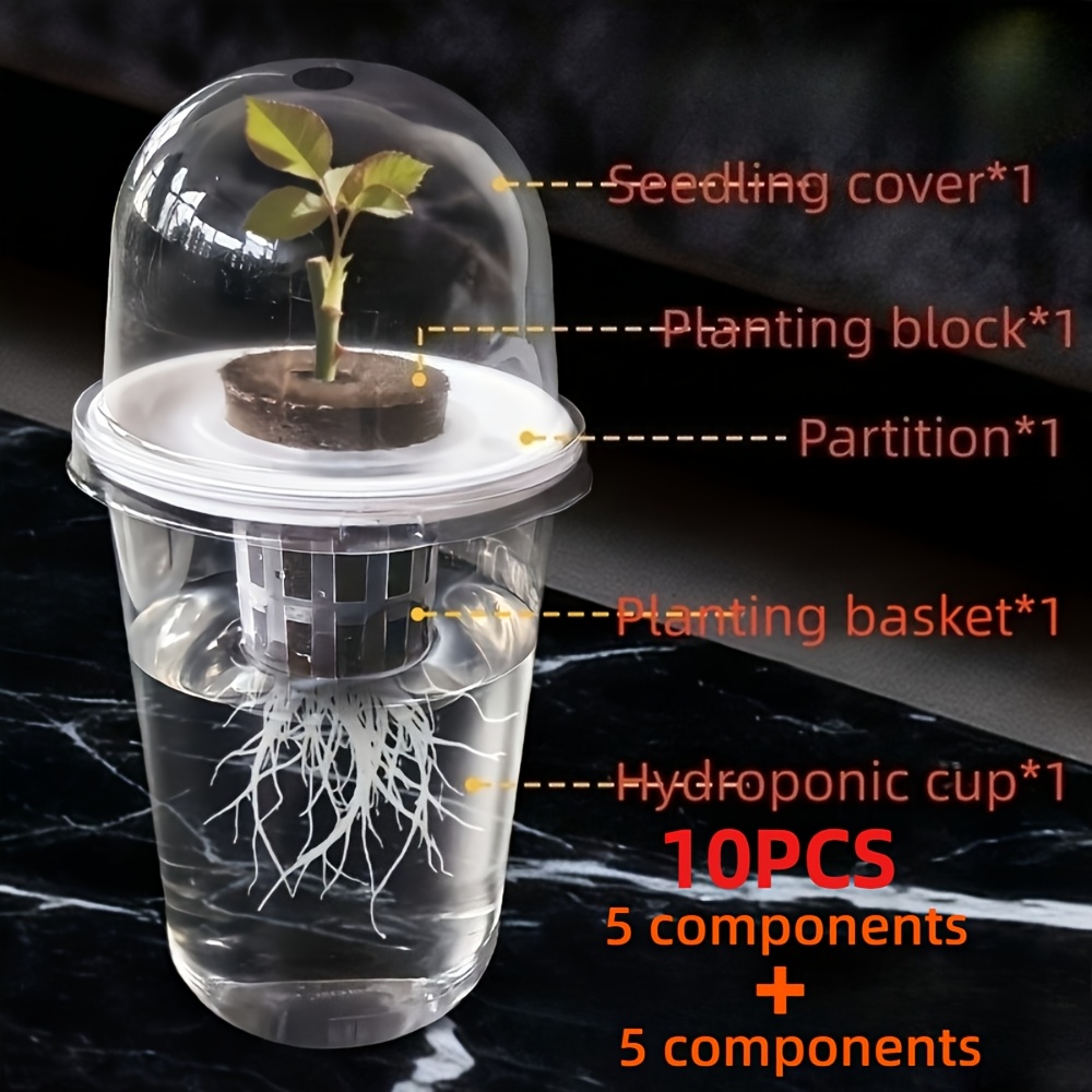 TEMU 10개입 (5세트 + 5개 부품) 투명한 원통형 플라스틱 재질 수경 재배 씨앗 포트 - 높은 투명성으로 뿌리 성장 관찰 가능, 통기성 향상을 위한 작은 구멍으로 뿌리 수분 문제 방지, 수경 재배 키트
