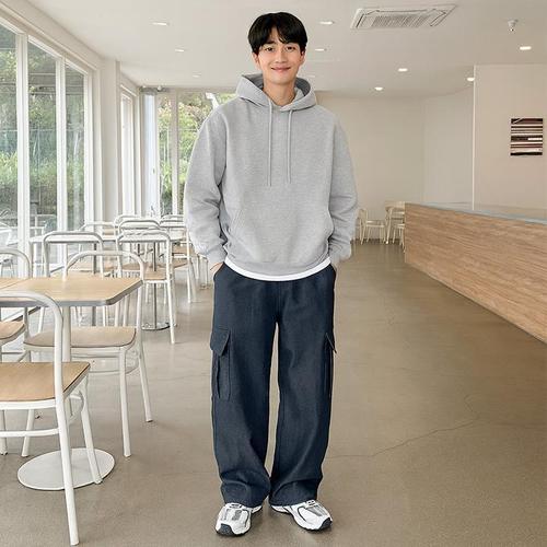 [sado]남성 겨울 기모 바지 웜 카고 데님 스트링 와이드 조거 팬츠HD-B186M