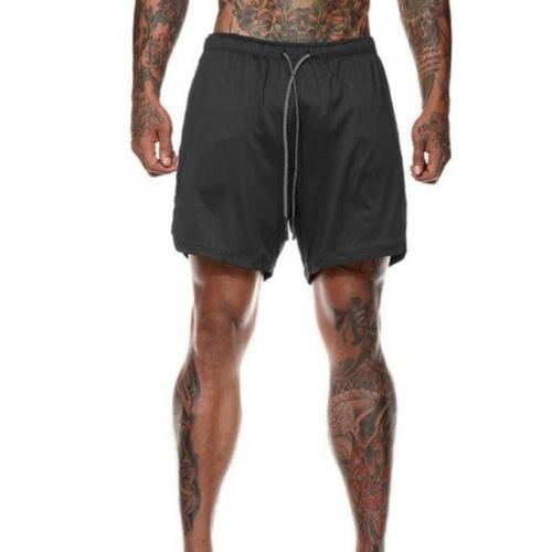 남성용 2 in 1 이중 레이어 스포츠 반바지 트레이닝복 짐 피트니스 조깅 운동복 하의