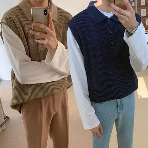 [리빌모아]남자 베이직 캐쥬얼 골지 무지 니트 조끼 LD-VEA-SIS6