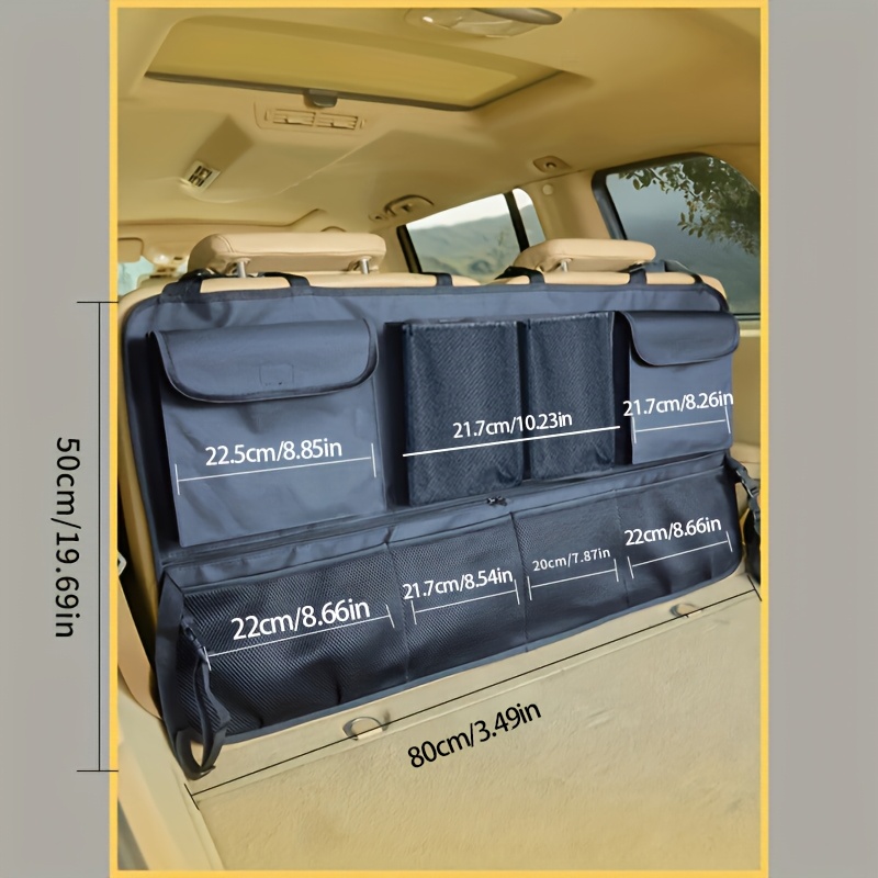 TEMU 9칸 디자인의 대용량 트렁크 정리함, 공간 절약형 걸이형 설치로 아이템을 정리하여 공간을 효율적으로 사용하는 차량용 트렁크 수납 용품