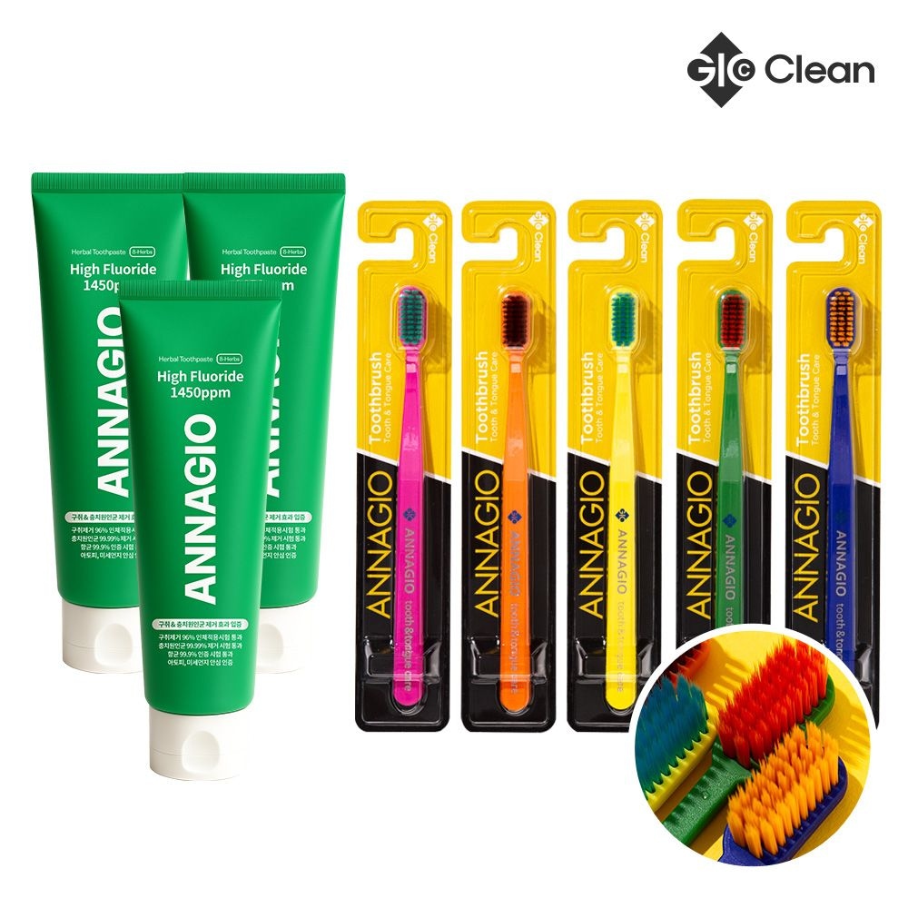 안나지오 구취케어 치약 100g 3개 + 칫솔 5개입