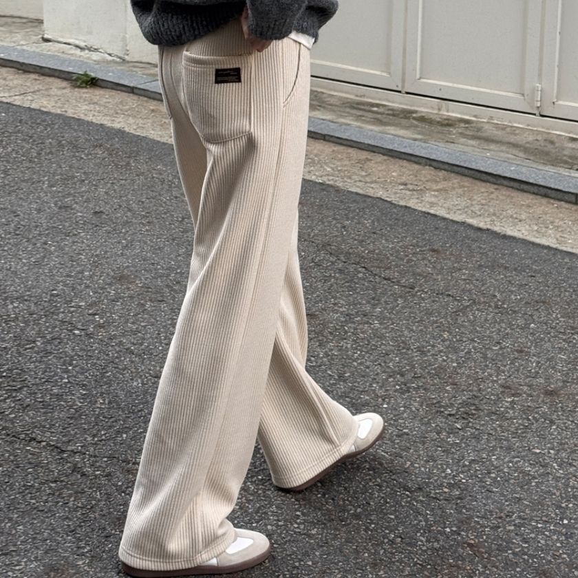 6457 크림 기모 일자핏 코튼 팬츠 (one color) 히든밴딩