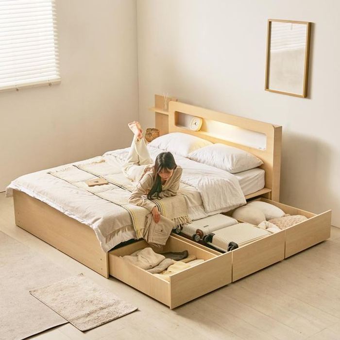 슬립스토아 슬립스토아 호텔 조이아 LED 빅서랍 수납침대 프레임 Q/K공용(퀸킹공용)