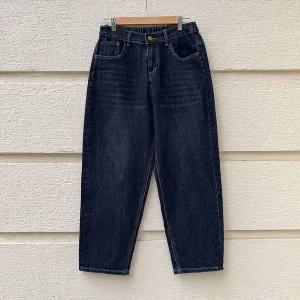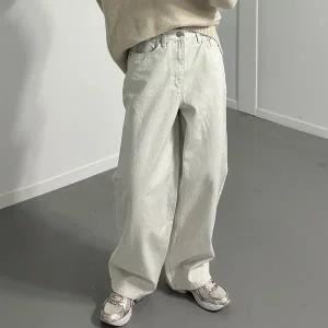 여자 가을 배기진 캣워싱 논스판 코튼 와이드 청바지