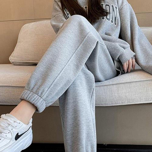 [셀럽하우스]여성 XHVT9343 얇은 와플 밑단 밴딩 루즈핏 조커 바지