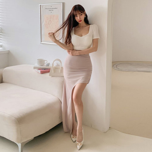 러블리감성 / 졸업식 스퀘어넥 언발 미니 원피스 / 섹시 파티 글램