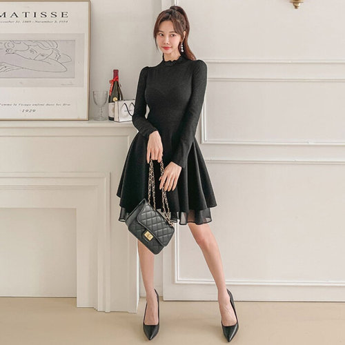 [다잇템]여자 졸업식룩 투톤셔츠 검정 미니원피스