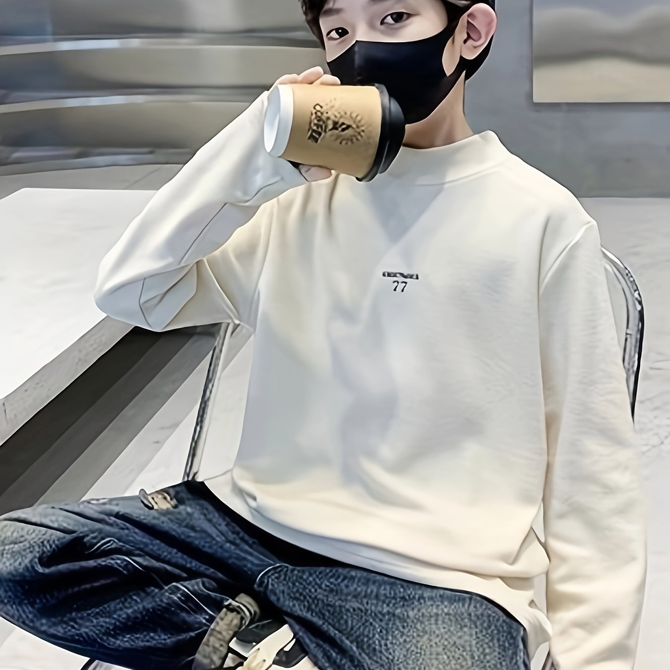 TEMU 소년용 겨울 보온 티셔츠 - 하이넥 긴팔 레이어링 탑, 화이트 칼라 & 베이지 컬러, 신축성 있는 소재, 어린이용 (/) - 손세탁 가능한 추운 날씨용 셔츠 & 캐주얼 의상