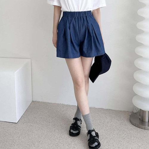 [셀럽하우스]여름 HBQV9679 여름 진청 반바지 a라인 핀턱 주름