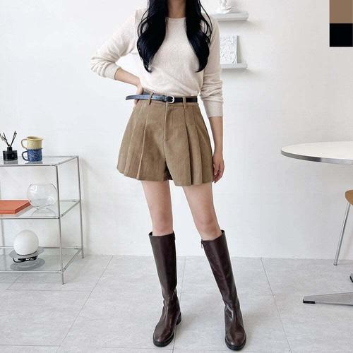 [셀럽하우스]여성 LBIP3176 핀턱 코듀로이 골덴 벨트포함 주름반바지