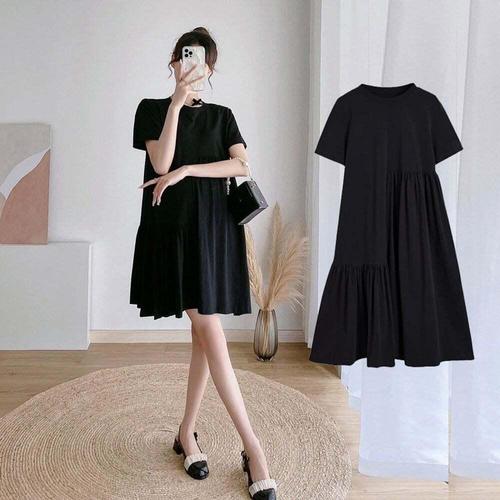 [셀럽하우스]라운드셔링원피스 GHFV6034 반팔 미디 주름l