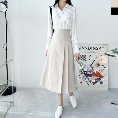 [셀럽하우스]언발 JQAQ2173 베이직 주름 A라인 플리츠 롱스커트
