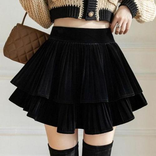 [셀럽하우스]스커트 CGBJ2250 겨울 주름 더블 벨벳 미니 치마 A라인 캉캉스