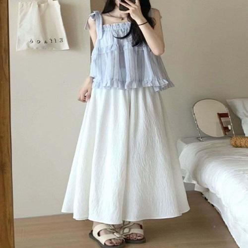 쉬폰 찰랑 주름 여성 여름 와이드 롱 치마바지 얇은바지 오피스룩