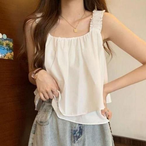 [셀러허브_여성트랜드패션]ONM 여성 여름 주름 숄더 크롭 민소매 블라우스 2c