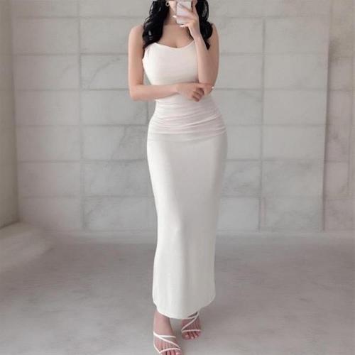 [다잇템][다잇템] 여성 어깨끈 심플톤 허리주름 롱 슬림핏 드레스_21850472_588872